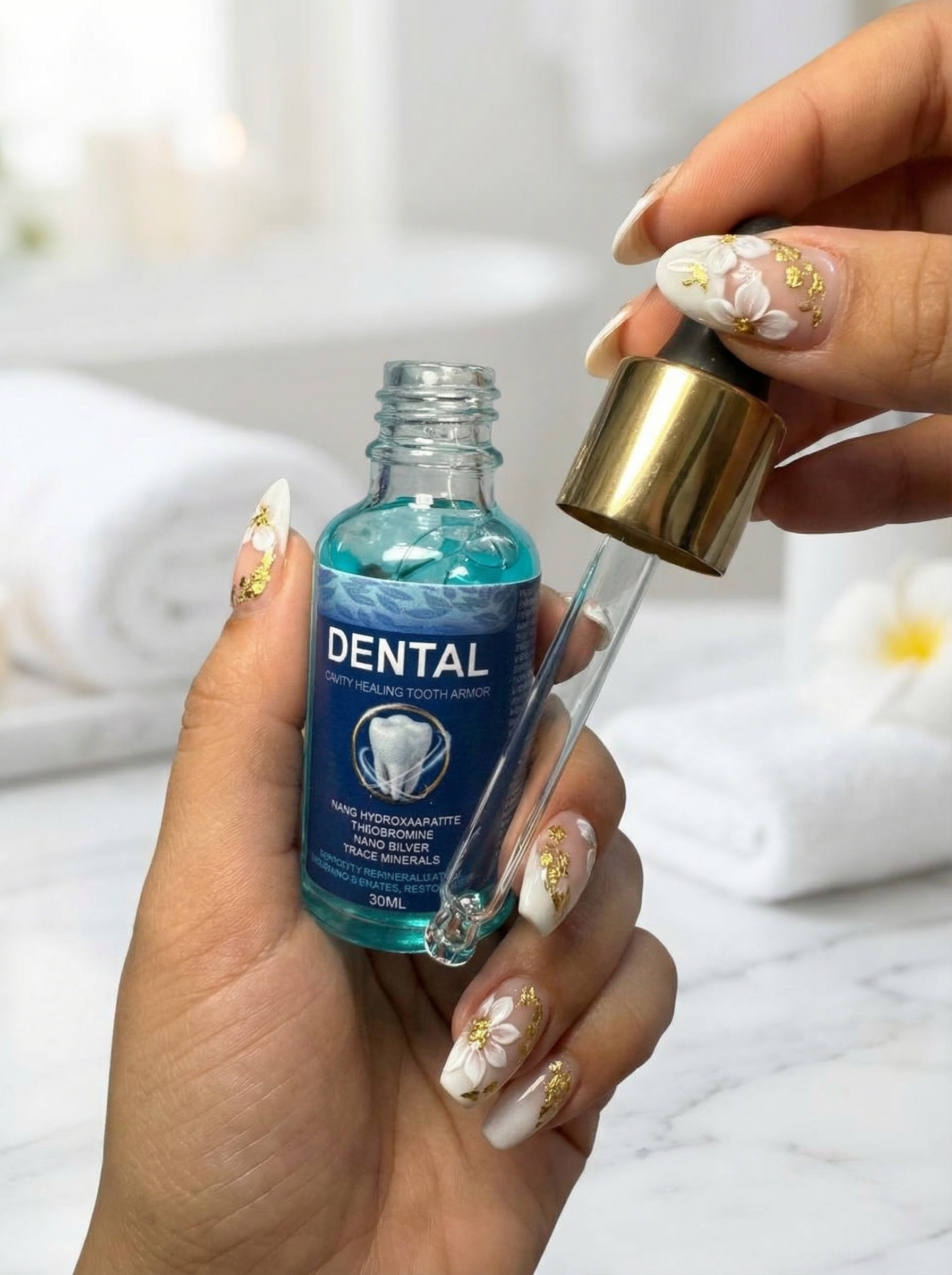 Al aplicarlo, sentirás una película protectora casi imperceptible que trabaja en silencio mientras duermes. Cada gota se integra a la superficie dental creando una sensación de suavidad y firmeza progresiva.